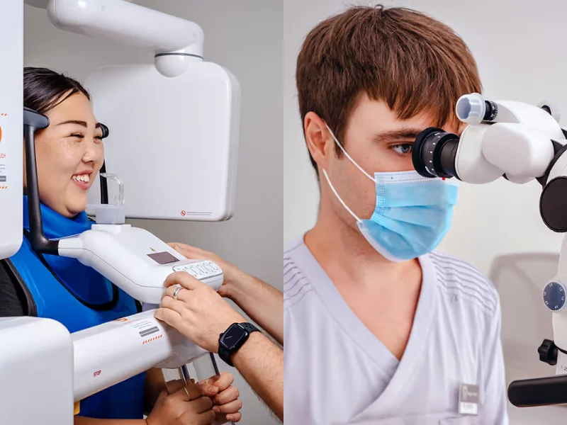 نقوم باجراء العلاج باستخدام المجهر، حيث أنه بفضل التكبير المتعدد يساعد المجهر على اكتشاف أصغر التغيرات في الأنسجة الصلبة.